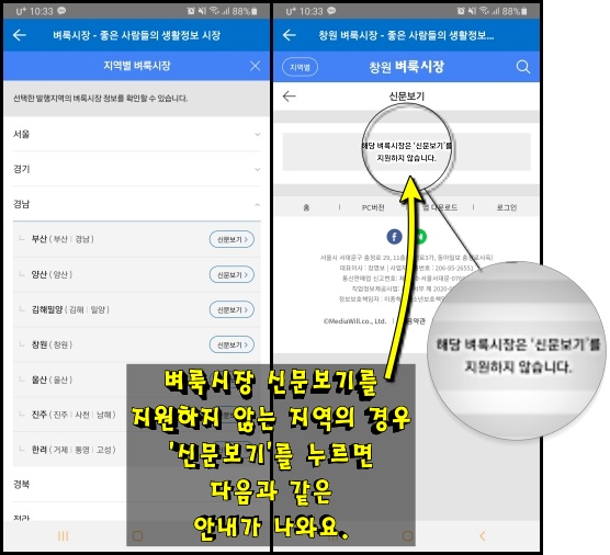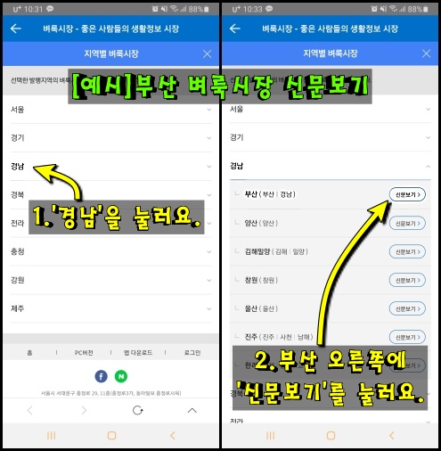 ์ง์ญ๋ณ ๋ฒผ๋ฃฉ์์ฅ ํ๋ฉด์ด ๋์ค๋ฉด ์ํ๋ ์ง์ญ์ ๋๋ฌ์ ํด๋น์ง์ญ์ ์ ๋ฌธ๋ณด๊ธฐ๋ก ๋ค์ด๊ฐ ์ ์์ด์.