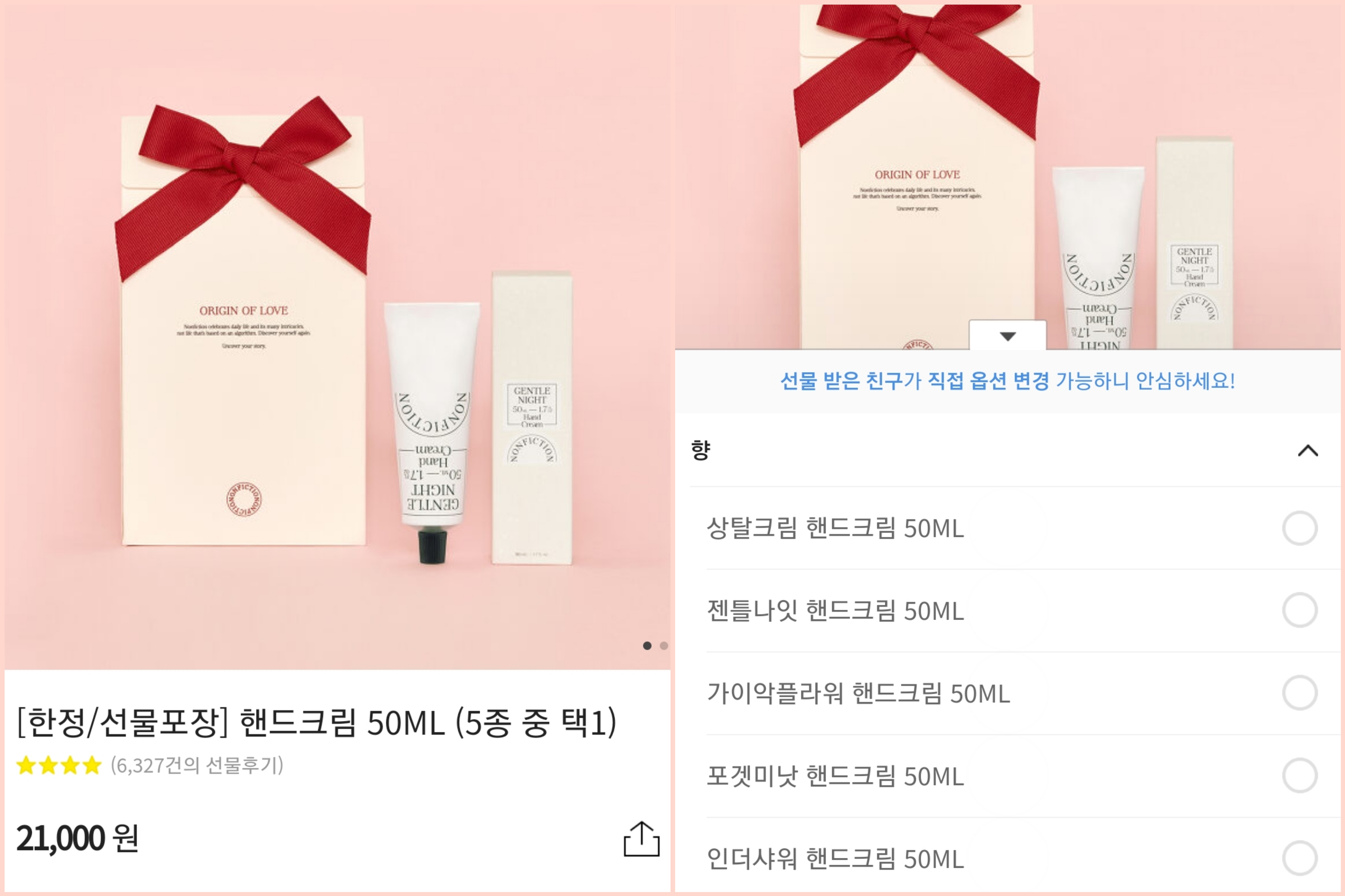 ์นด์นด์คํก ์ ๋ฌผํ๊ธฐ์์๋ ์ถ์ฒ ํธ๋ํฌ๋ฆผ ์ ๋ฌผ 1์์์๋ค๊ณ ํด์. ํธ๋ํฌ๋ฆผ ์ฉ๋์ 50๋ฏธ๋ฆฌ(ml), ํฅ์ ์ด 5๊ฐ์ง๊ฐ ์์ด์.