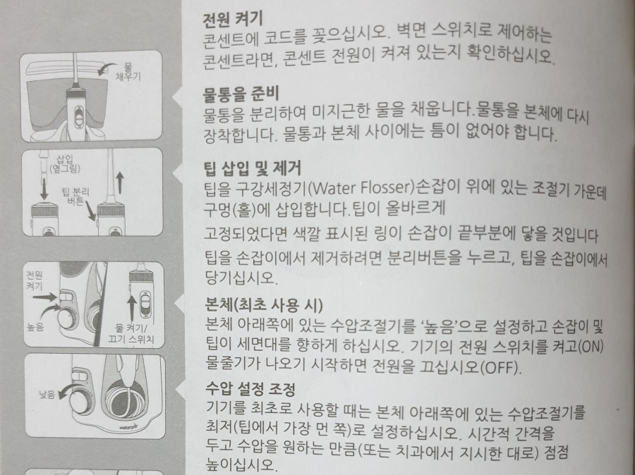 ์ฝ๊ฒ ๋งํด ์ ์์ ์น์ ๊ฐ์ญ๊ธฐ๋ก, ๋ฌผ์ ์ฌ์ฉํ์ฌ ์น์ ์ฌ์ด์ ์๋ชธ ์ฃผ๋ณ์ ์น์์ ์ด๋ฌผ์ง์ ์ ๊ฑฐํ๋๋ฐ ๋์์ ์ฃผ๋ ๋ฌผ ์นซ์์ด๋ผ๊ณ ์ดํดํ์๋ฉด ๋ผ์. ์ ๊ฐ ๊ตฌ๋งคํ WP-150 ๊ตฌ๊ฐ์ธ์ ๊ธฐ ์ฌ์ฉ ์ค๋ช ์๋ฅผ ์ฒจ๋ถํ์ด์. ์ฒจ๋ถ๋ ์ฌ์ง์ ํตํด ์ฅ์น์ ๊ธฐ๋ฅ์ ์์งํ๋ค๋ฉด ์ฌ์ฉ๋ฒ์ ์ตํ๋ณผ๊ฒ์.
