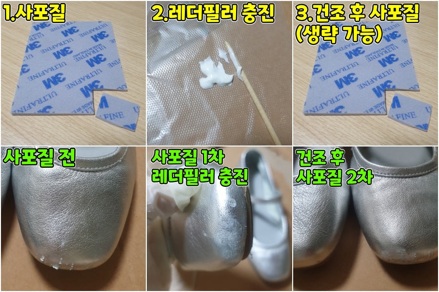 ๊ฐ์ฃฝ ํด๋ฆฌ๋๋ก ๊ฐ์ฃฝ ํ๋ฉด์ ์ผ๋ฃฉ์ ์ ๊ฑฐํด์. ๊ทธ ํ ํ ์ง์ด ์๋ ๋ถ๋ถ์ ์๋์ผ๋ก ๋ง์ ธ๋ณด๋ฉด ๋์ ์ ๋ณด์ด์ง ์์๋ ๊ฐ์ฃฝ์ด ํ๋ฉด์ด ์ผ์ด๋ ๊ฒ์ ๋๋ ์ ์๋๋ฐ์. ์๋์ผ๋ก ๋ง์ก์ ๋ ๊ฑฐ์น ๊ฒ ์ผ์ด๋ ํ๋ฉด์ ๊ฐ์ค์ฝ์์ ๊ตฌ๋งคํ ์คํ์ง์ฌํฌ๋ฅผ ์ด์ฉํ์ฌ ์ด์ด์ด ์๋ฉ ์์