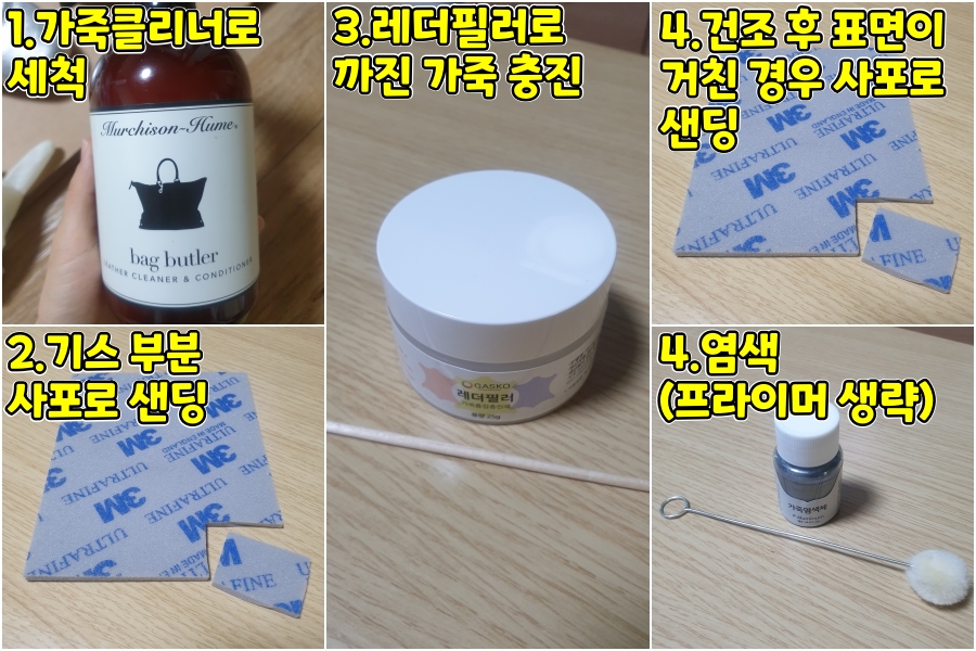 ๊ฐ์ฃฝ ์ ํ ์์ ์ ์ฒซ ๋จ๊ณ์ ๋ ๋ ์์(๊ฐ์ฃฝ ์ธ์ ์ )๋ก ๊ฐ์ฃฝ ํ๋ฉด์ ์ผ๋ฃฉ์ ์ ๊ฑฐํ๊ธฐ ์ํด ํ์ํ๋ฐ์. ์ ๋ ์์ฐจ ๊ด๋ฆฌ์ฉ์ผ๋ก ์ฌ์ฉํ๊ณ ์๋ ๊ฐ์ฃฝ ํฌ๋ฆฌ๋๊ฐ ์์ด์ ๊ตฌ๋งคํ์ง ์๊ณ ์๋ ์ ํ์ ์ฌ์ฉํ์ด์. ๊ทธ๋ฆฌ๊ณ ํ๋ผ์ด๋จธ์ ์ฝํ ์ ๋ ๋จ๊ณ๋ ์์ ์๋ตํ์ด์.