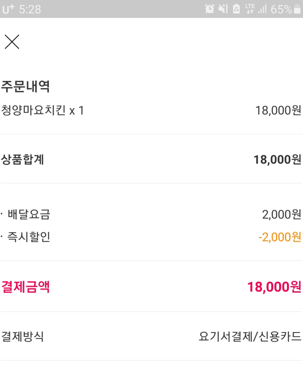 ์ ๋ ๋ฐฐ๋ฌ์ฑ '์๊ธฐ์' ํตํด ์ฃผ๋ฌธ ์ 2,000์ ๊ธ์ก ํ ์ธ์ผ๋ก ๋ผ์๋ ๊ธฐ๋ณธ ์ฒญ์๋ง์์นํจ์ 16,000์์ ์ฃผ๋ฌธํ์ด์. ๋ฐฐ๋ฌ๋น 2,000์ ํฉํด ์ด 18,000์์ ์ฃผ๋ฌธํ์ด์.