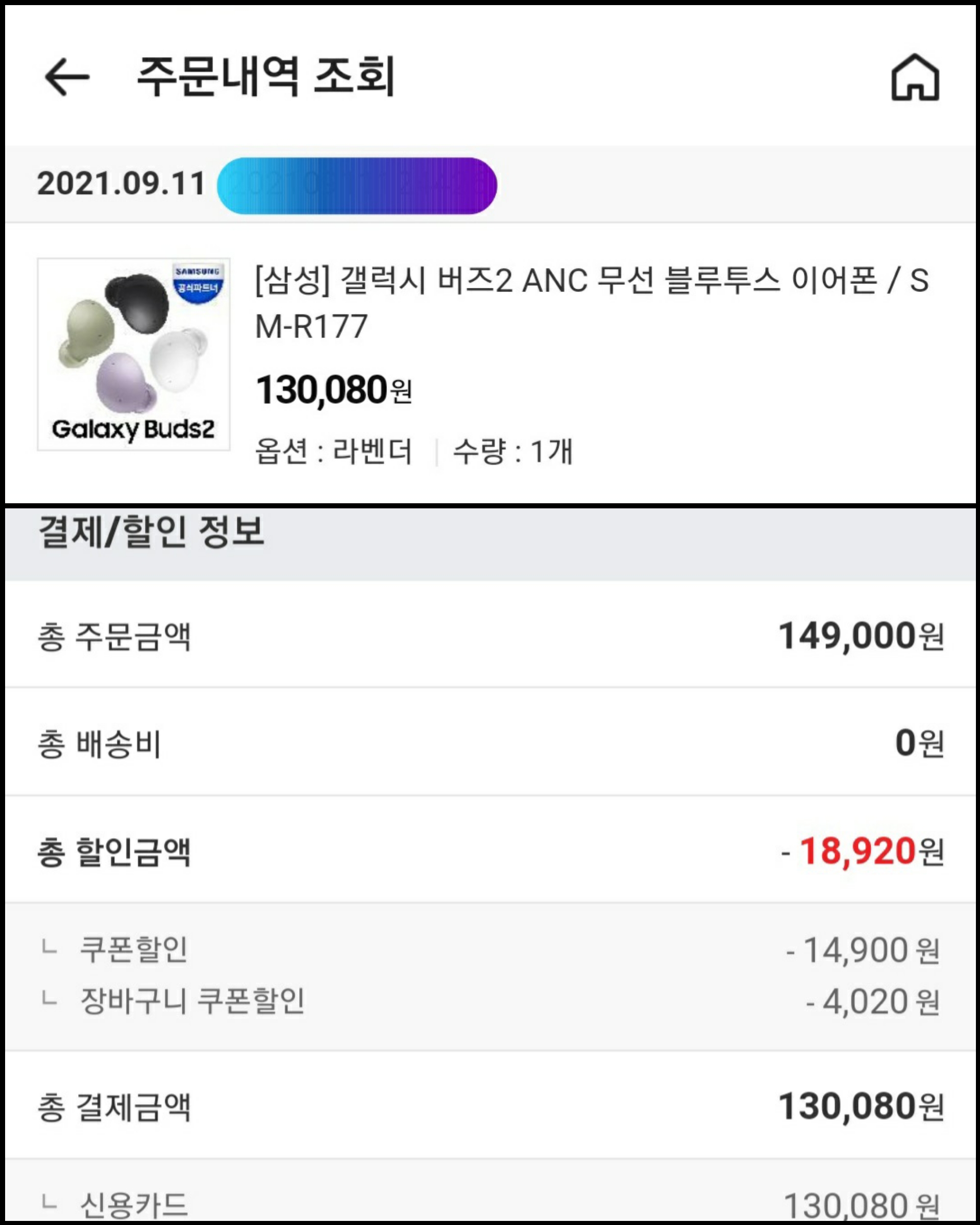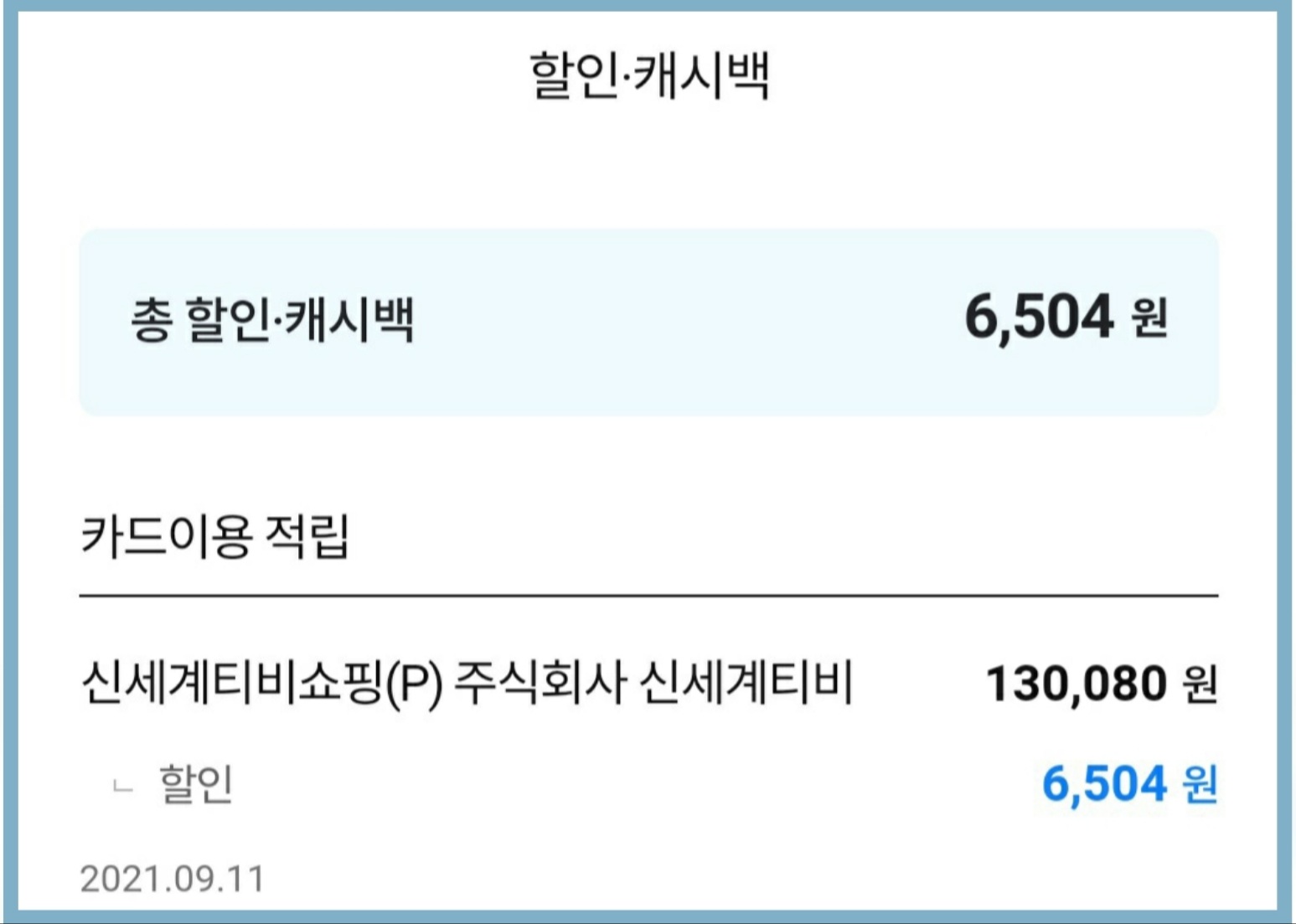 โช๏ธ์ถ๊ฐ ์นด๋ 5%์ฒญ๊ตฌํ ์ธ (-6,504์)