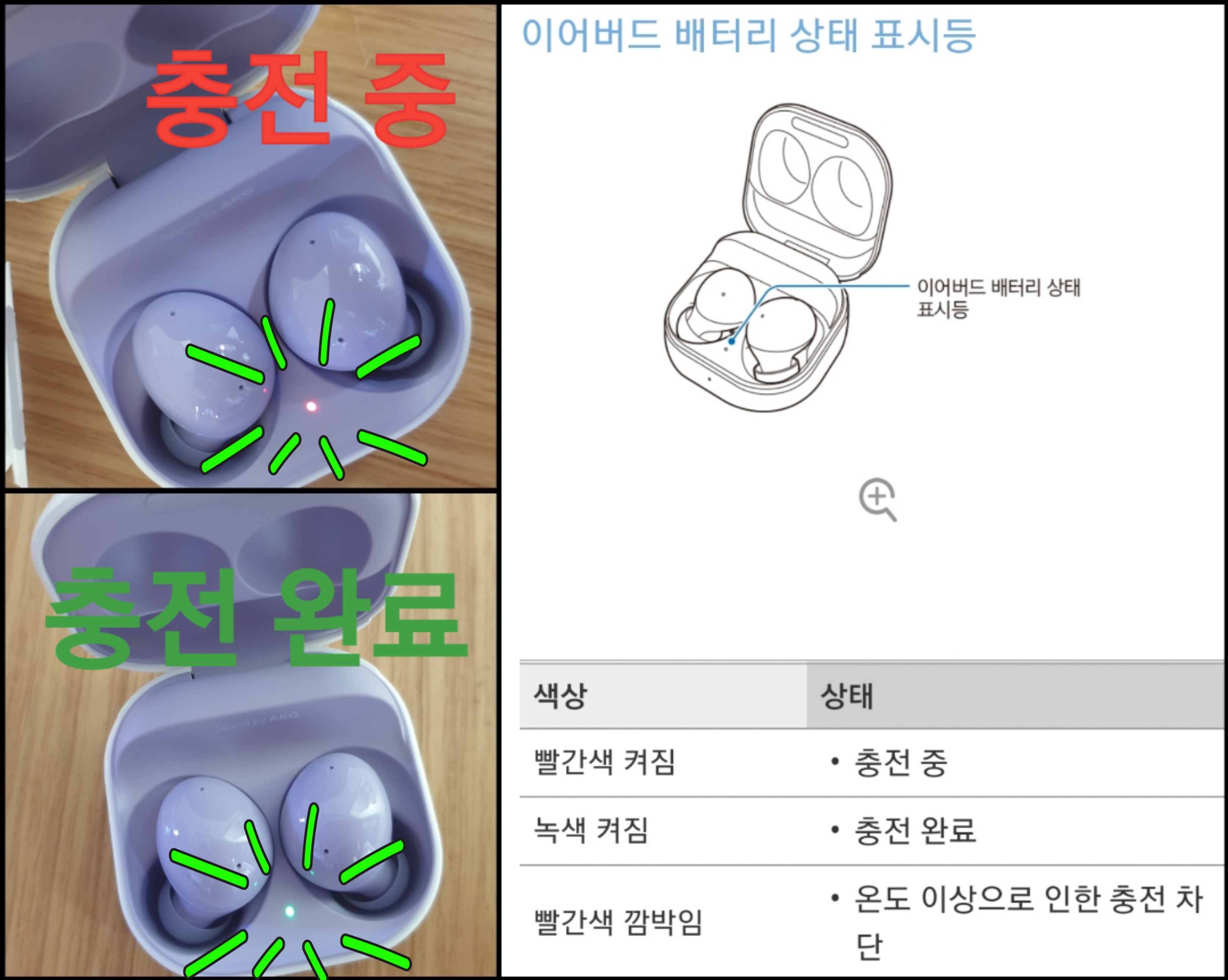 ์ถฉ์ ์ผ์ด์ค ๋ฐฐํฐ๋ฆฌ ์ํ ํ์๋ฑ๋ ๋ง์ฐฌ๊ฐ์ง๋ก ์ถฉ์ ์ค์๋ ๋นจ๊ฐ์, ์ถฉ์ ์๋ฃ์๋ ์ด๋ก์ ํ์๋ฑ์ด ๋ค์ด์์.