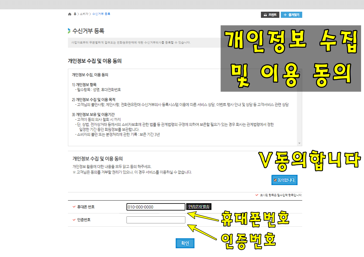 ๋ ฅ ํ ์ธ์ฆ๋ฒํธ๋ฐ์ก์ ํตํด ์ธ์ฆ๋ฒํธ๋ฅผ ํ์ธํ์ฌ ๊ฐ์ธ์ ๋ณด ์์ง ๋ฐ ์ด์ฉ๋์๋ฅผ ํ๋ ๊ณผ์ ๋ง ๋จ์์ด์.