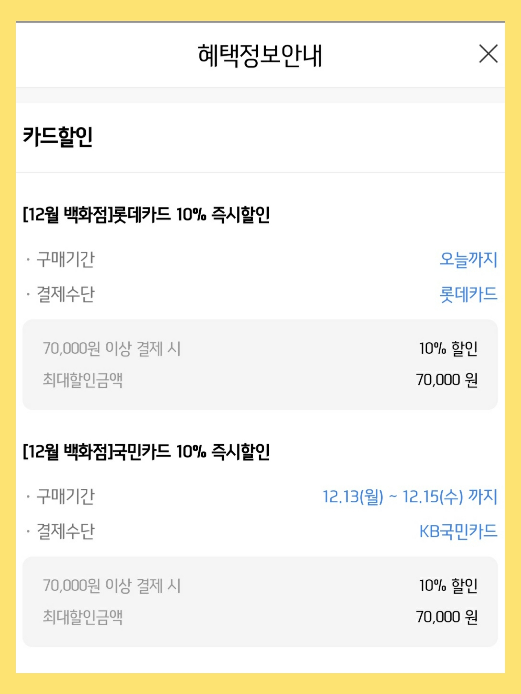(์จ๋ผ์ธ์คํ ์ด ๋กฏ๋ฐ์จ ํ ์ธ, ์นด๋ ์ค๋ณต ํ ์ธ ํํ ์ ์ฉ)