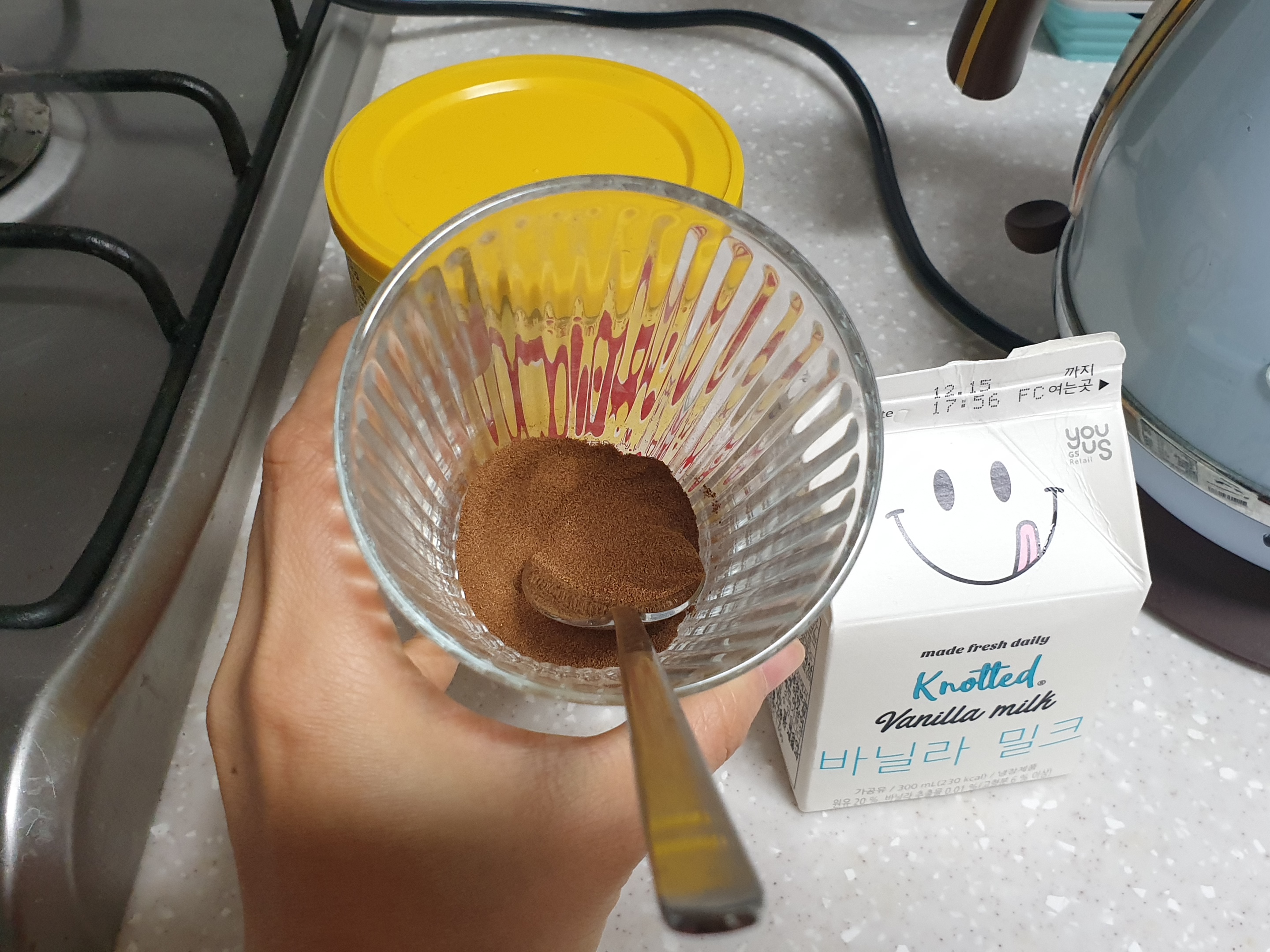 ๋ณด๋ฆฌ์ปคํผ์ ๋จ๊ฑฐ์ด ๋ฌผ์ ์ฝ 50๋ฏธ๋ฆฌ(ml) ๋ถ๊ณ ์คํผ์ผ๋ก ํ๋ฆฌ๋ฆญ! ๋ณด๋ฆฌ์ปคํผ ๊ฐ๋ฃจ๋ ์นด๋์ ๊ฐ์ ์ปคํผ ์๋ ๊ฐ๋ฃจ์ ๋นํด ์๋